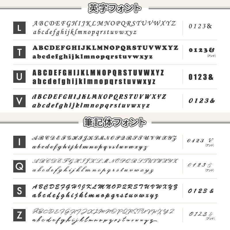 豊富な書体からお好きな書体をご選択ください。 筆記体フォントを選択した場合、頭文字のみ大文字となります。