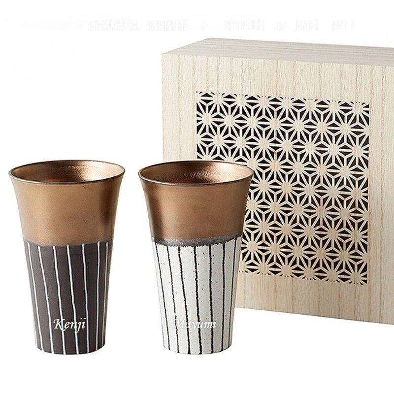 MINO-YAKI ペアロングカップ 細密木箱入350ml