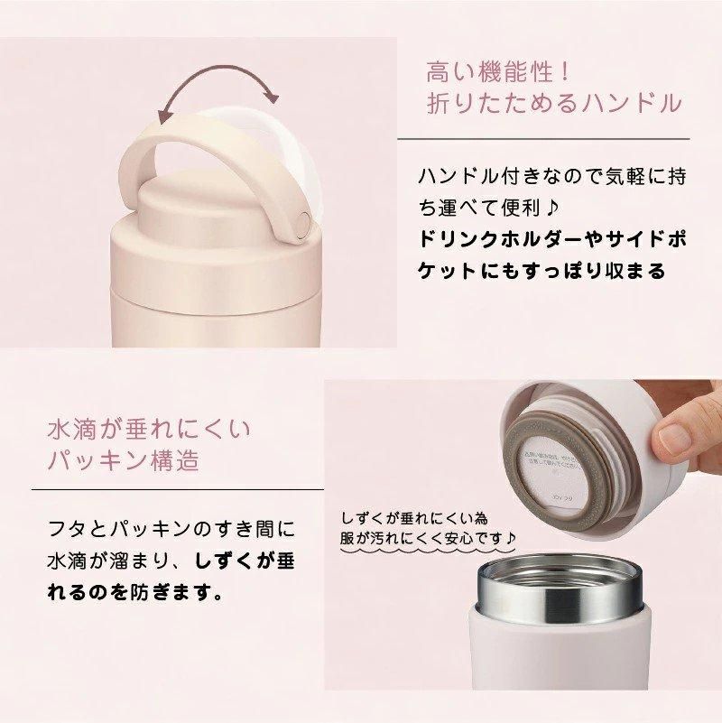全パーツ食洗機OKスポーツ飲料OK! 広口で香りが楽しめるからコーヒーや紅茶に最適!水滴が垂れにくいパッキン形状 ステンレス製魔法びん構造。真空断熱構造だから、飲み頃温度をキープ。保温・保冷OK