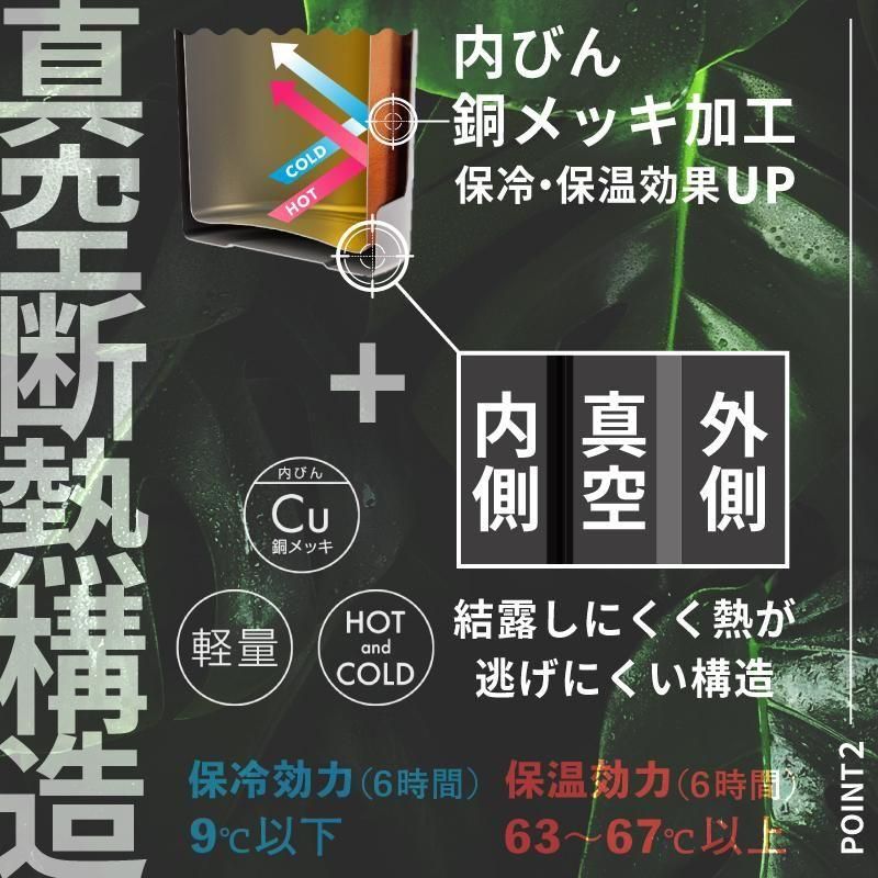 軽くて丈夫、傷のつきにくいスクリューボトル 本体に施したパウダー塗装はキズ付きを防止し、濡れた手で扱っても滑りにくいため、アウトドア、デスクワークなどシーンを選ばず活躍します。 広口の口径で氷が入れやすく、パーツ数が最小限のためお手入れも簡単です。 真空断熱二重構造+内びん銅メッキ加工で飲みものの美味しい温度が長持ちします。